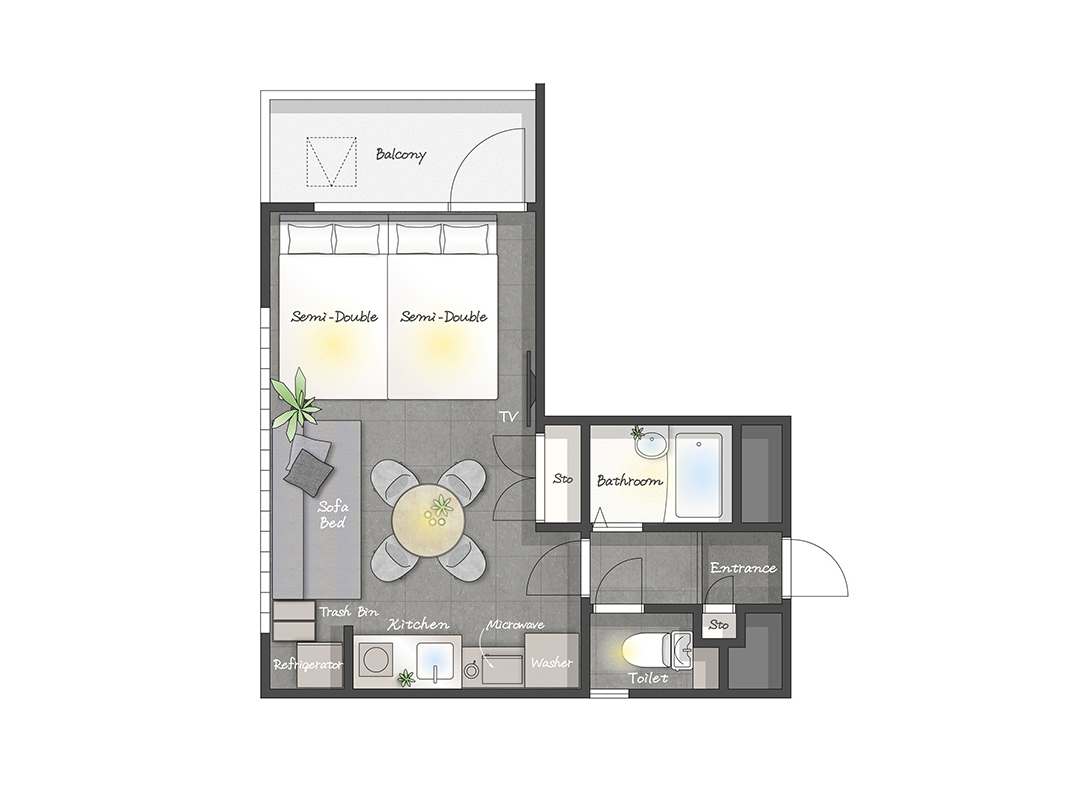 | Bedroom | 1 room 2 semi-double bed 1 single-size sofa bed |
